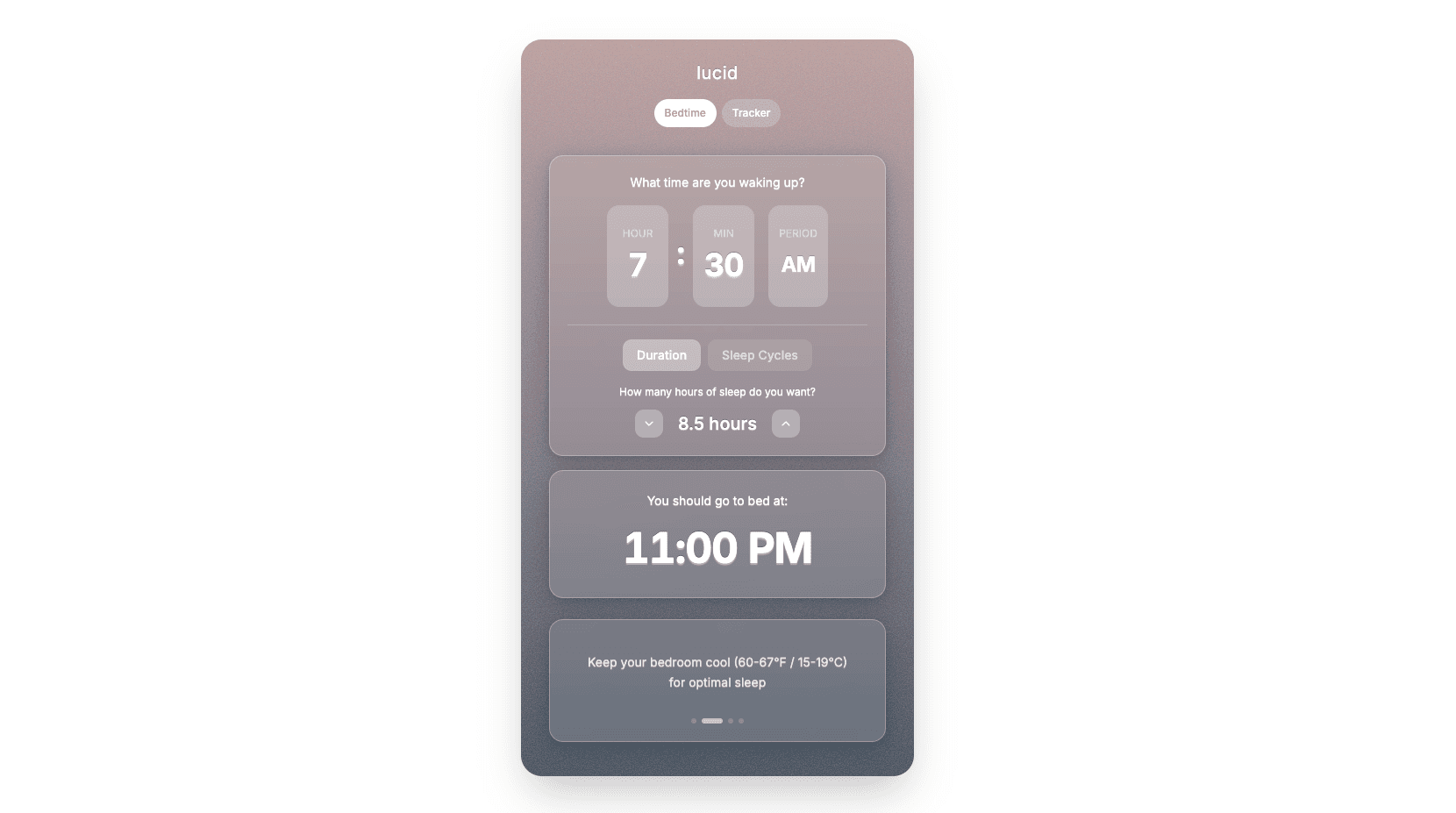React + TypeScript interface, styled with Tailwind, animated with Motion.