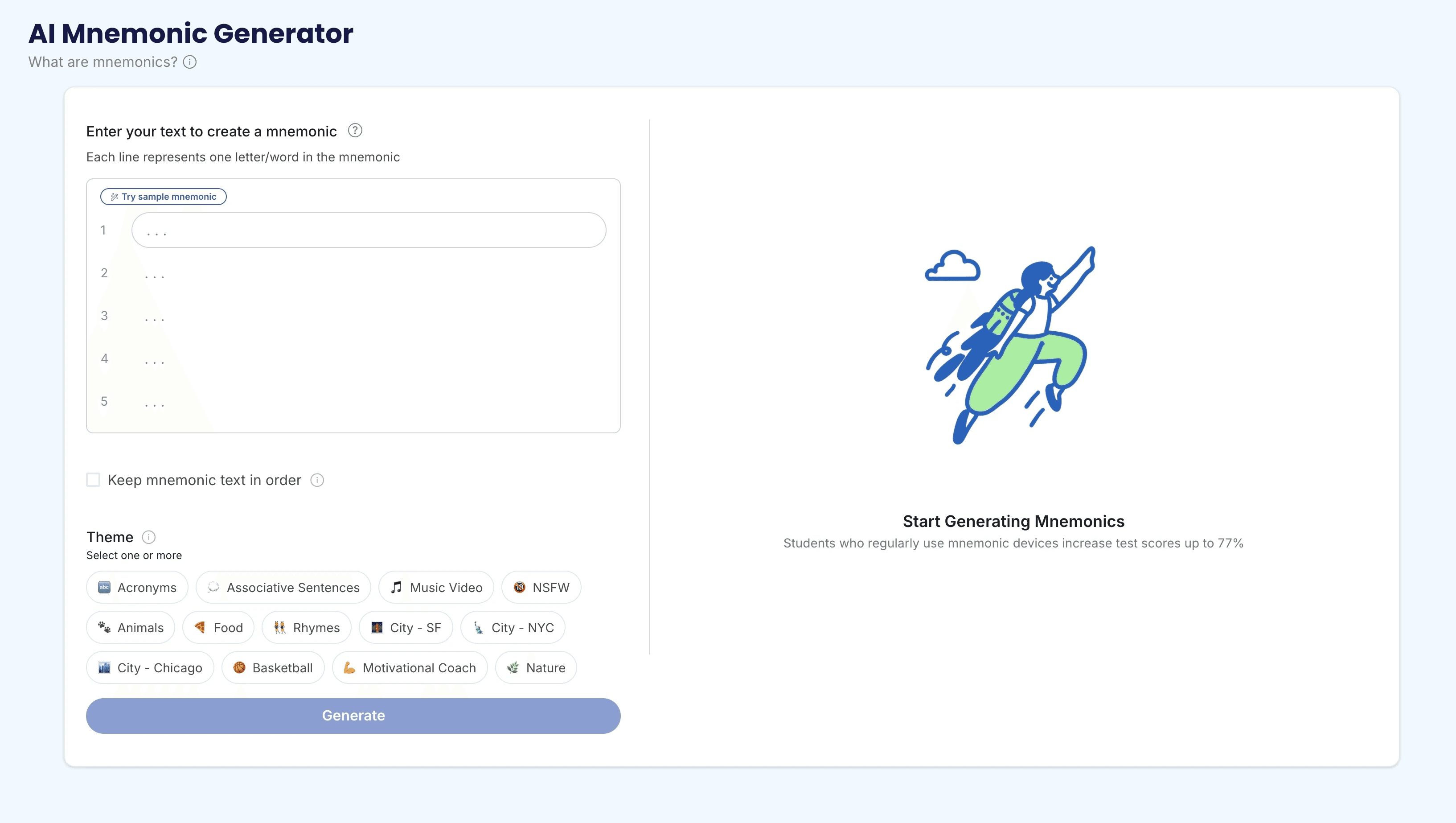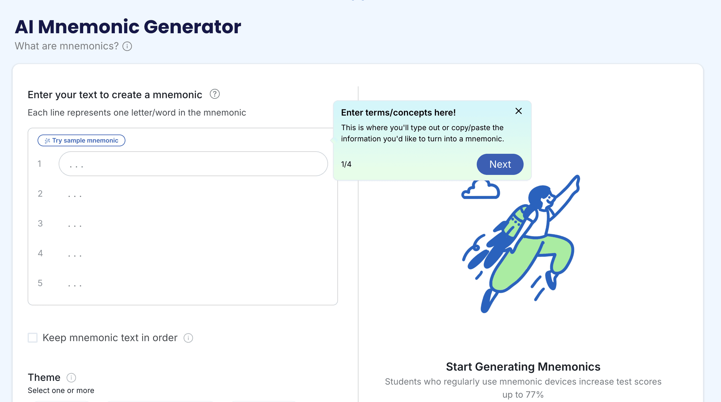 Example of a less familiar tool with limited guidance (Mnemonic Generator page)