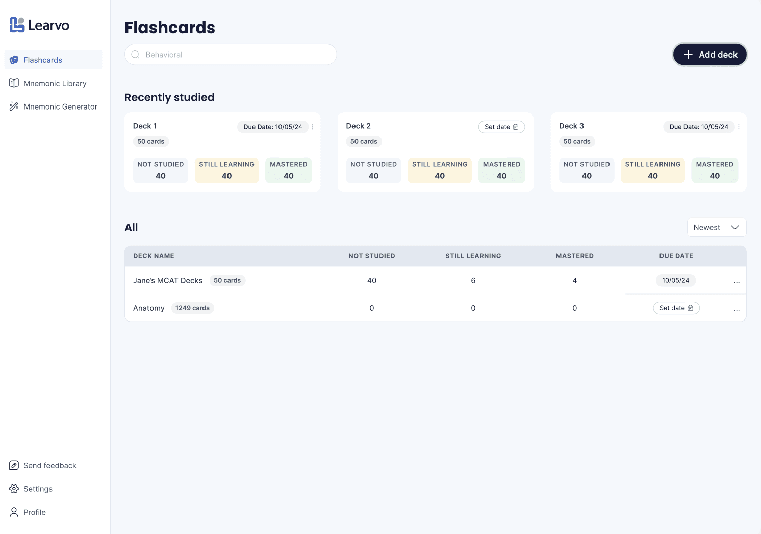 Originally designed for medical students, Learvo reduces friction in traditional flashcard tools while supporting consistent study habits.