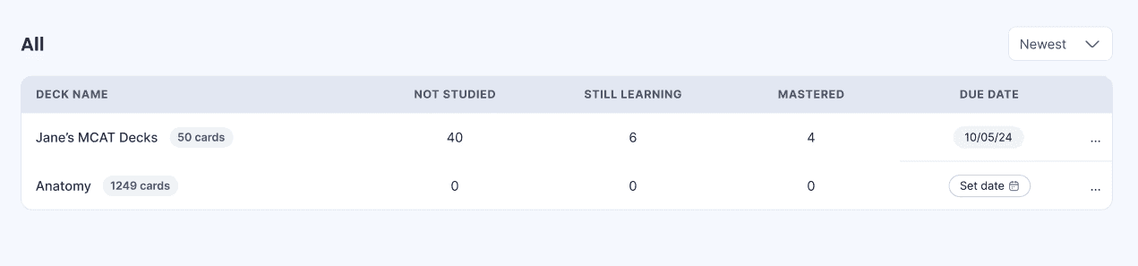 When you upload and study a quiz or flashcard deck, your progress will appear here!