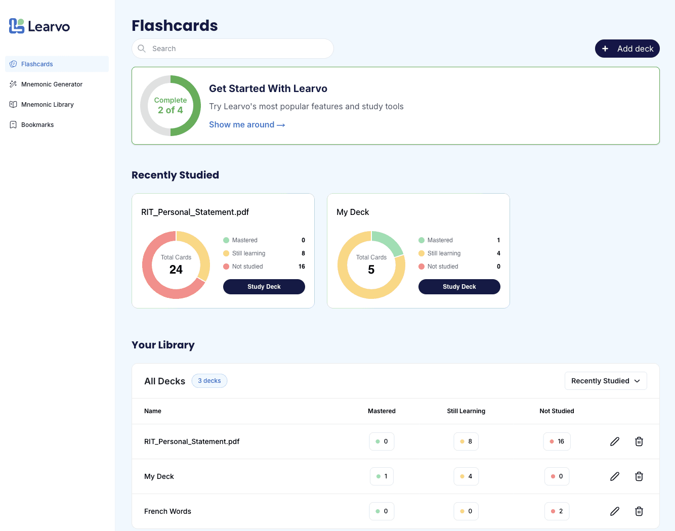 Learvo is a learning platform built around flashcards and structured study tools. While the core functionality was strong, the product struggled with new user retention.